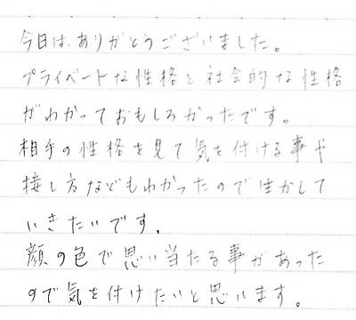 実際に、他の方のひたいに見ることができたので、今後鏡を使ってみていこうと思いました。