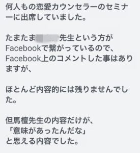 セミナーにいらした方のメッセージです。